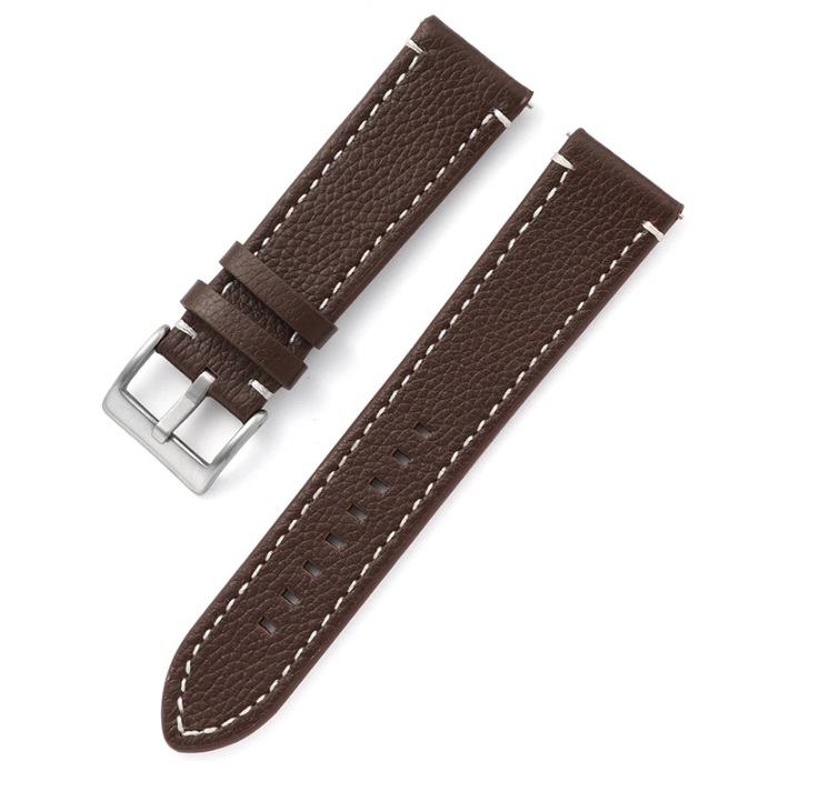 eses Kožený řemínek - Tmavě hnědý s bílým prošíváním, 20 mm