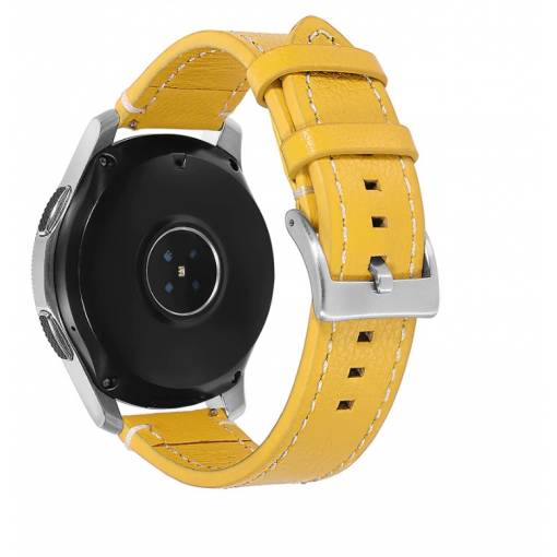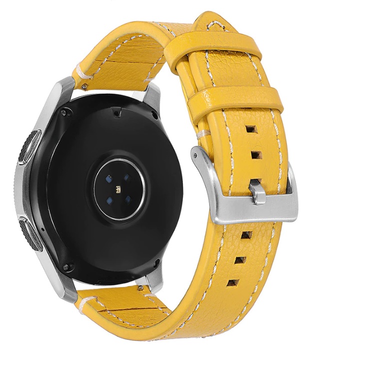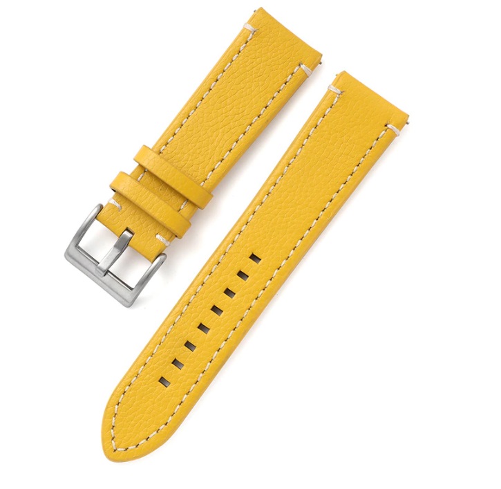 eses Kožený řemínek - Žlutý s bílým prošíváním, 22 mm
