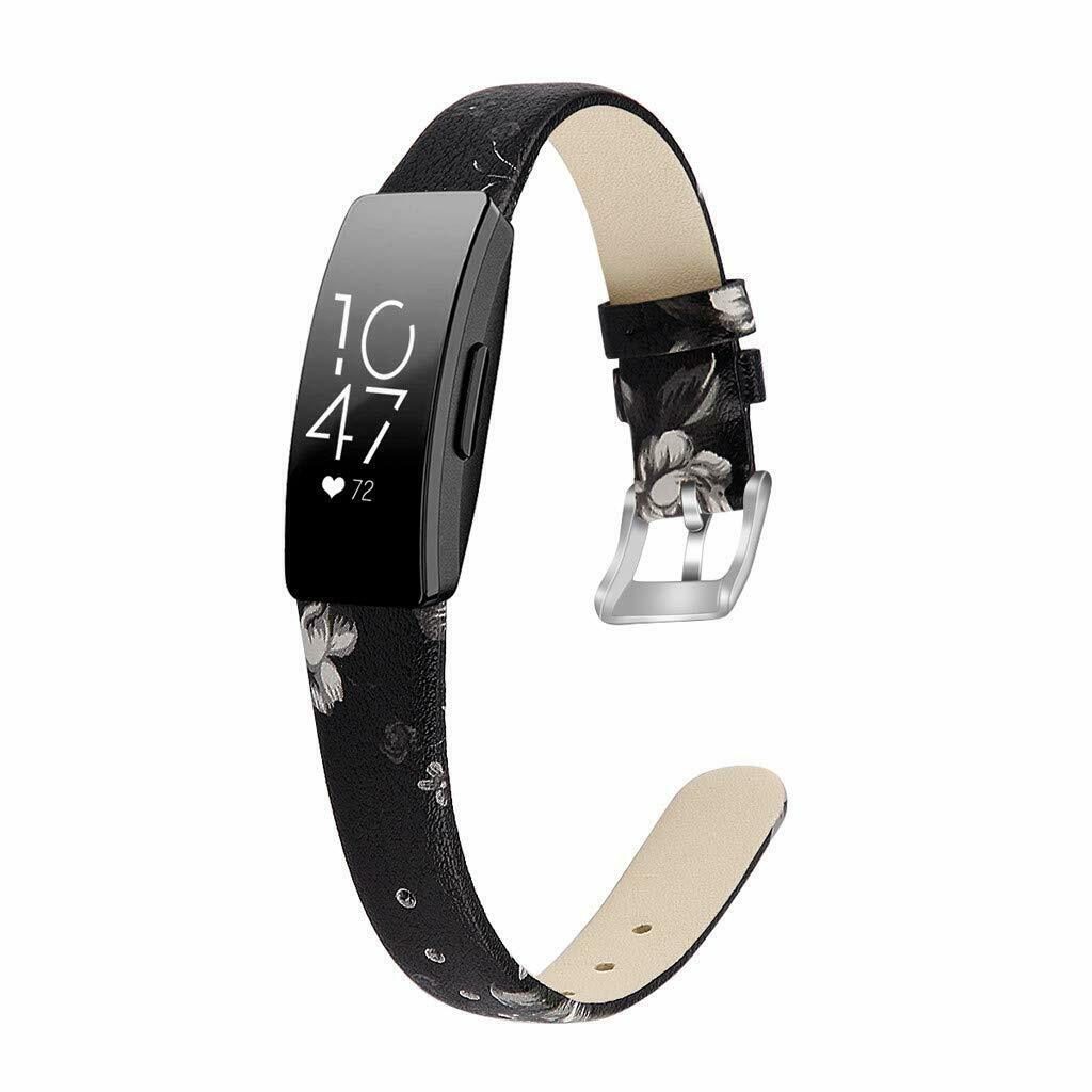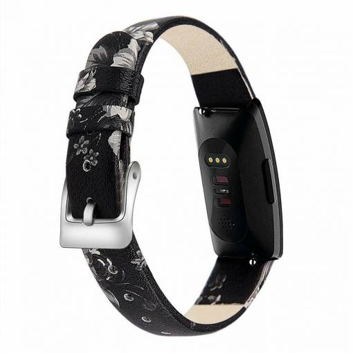 eses Kožený řemínek pro Fitbit Inspire 1, 2, HR, Ace 2 a 3 - Květinový černý