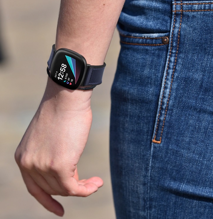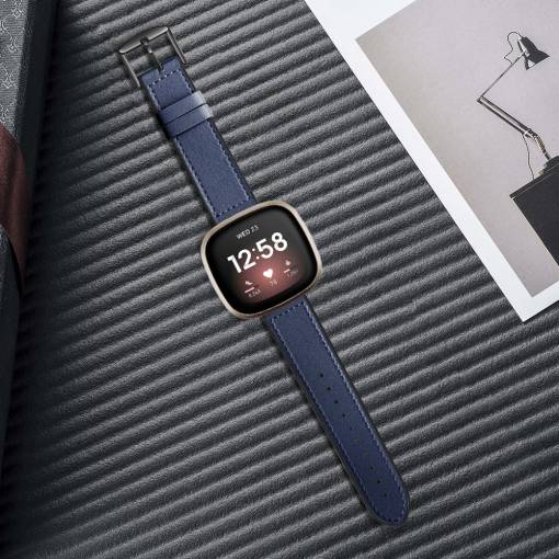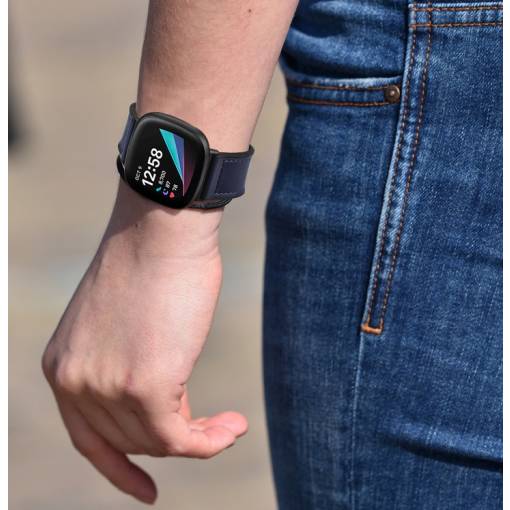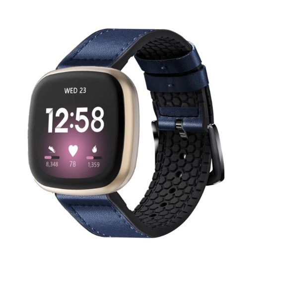 eses Sportovní kožený řemínek pro Fitbit Versa 3 a 4, Sense 1 a 2 - Modrý