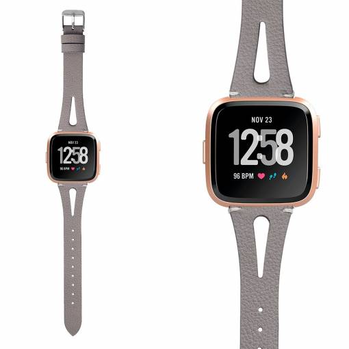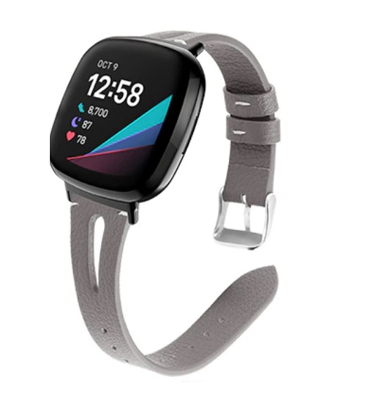 eses Kožený úzký řemínek pro Fitbit Versa 3 a 4, Sense 1 a 2 - Šedý