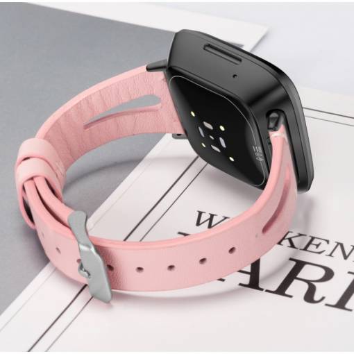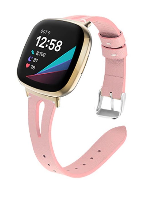 eses Kožený úzký řemínek pro Fitbit Versa 3 a 4, Sense 1 a 2 - Růžový