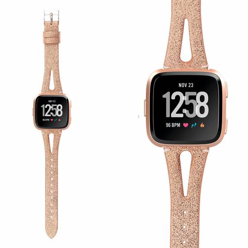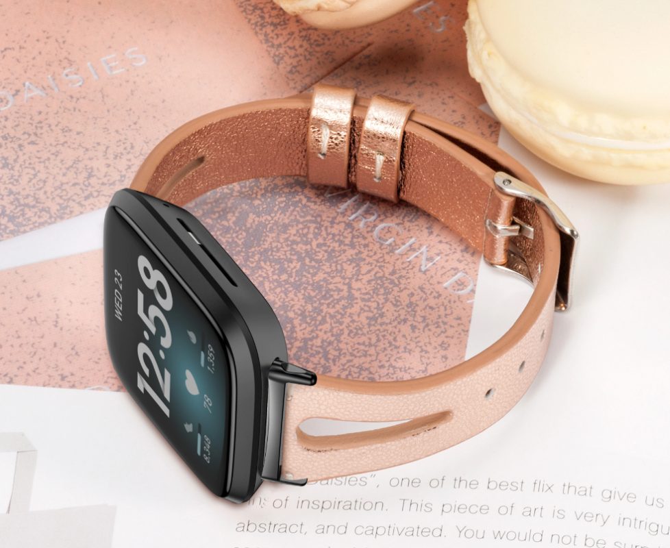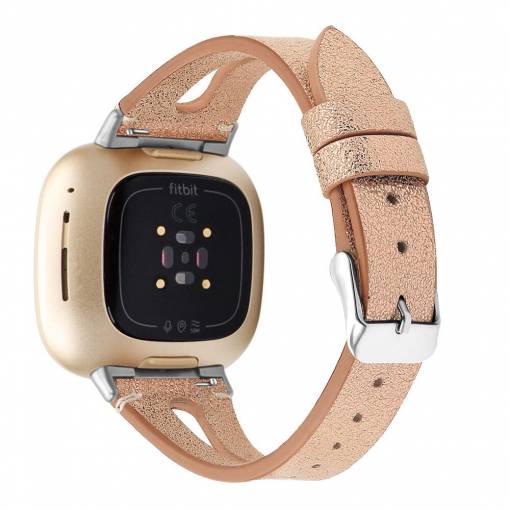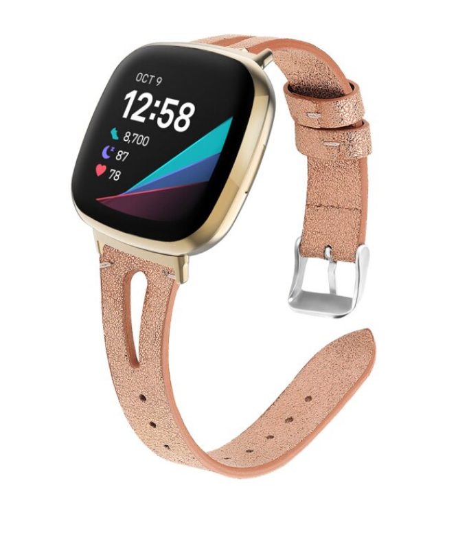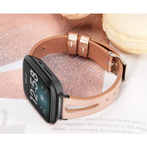 eses Kožený úzký řemínek pro Fitbit Versa 3/4, Sense 1/2 - Růžová zlatá